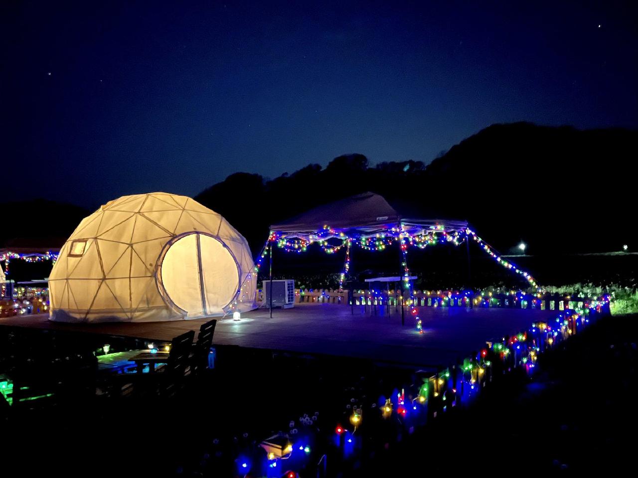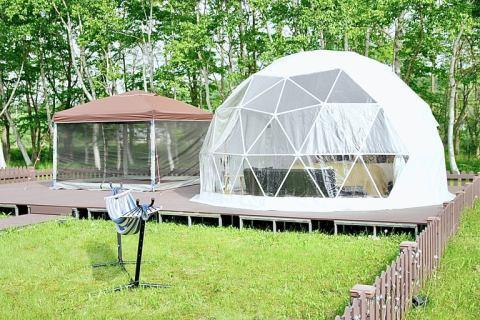 ドーム型の宿泊テントにはエアコンが完備されており、快適に過ごせる環境が整っています。