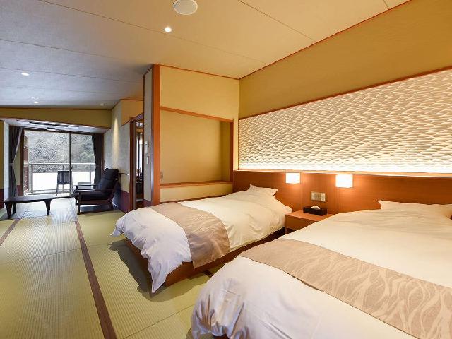 森に囲まれたねぎやは、「有馬のはなれ」と言うにふさわしい落ち着きの中にあります。手に届きそうな距離で周りを囲み木々は、季節ごとに色を変えるだけではなく、朝夕で違う表情に。露天風呂付客室をはじめ楓の木々を臨む和室やモダンな和洋室など自然を感じる客室で静かなひと時を。